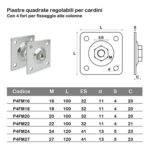 Piastre quadrate ZINCATE registrabili per cardini.