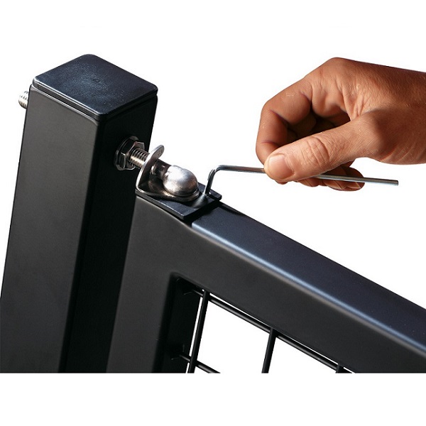 Coppia cardini chiudicancello a molla, con forza regolabile tramite brugola 3 mm.