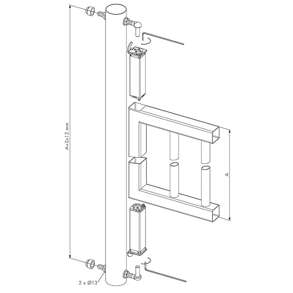 Per applicazione su tubo 40x40x2, sono reversibili per aperture Dx o Sx.