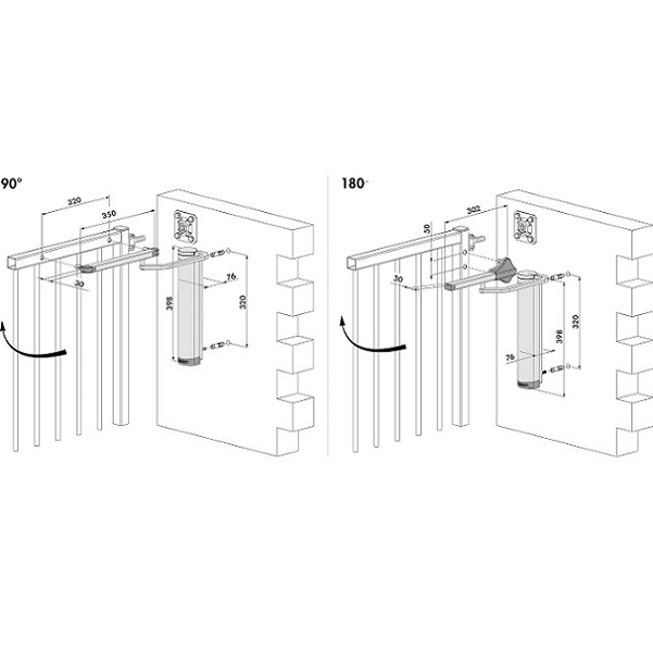 Potente chiudi cancello idraulico per applicazione a parete