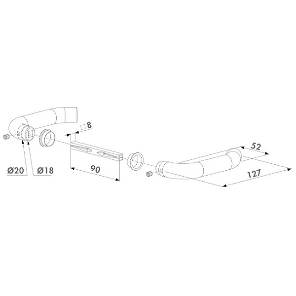 Coppia maniglie in acciaio inox per serrature standard, con quadro da 8 mm.
