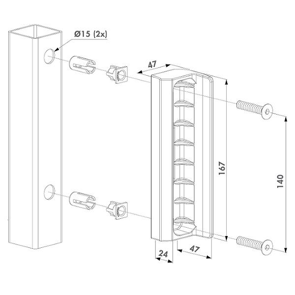 Incontro in poliammide per cancelli da giardino e per la serratura di sicurezza POOL-LOCK, conforme allo standard di sicurezza per le piscine NF P90-306.