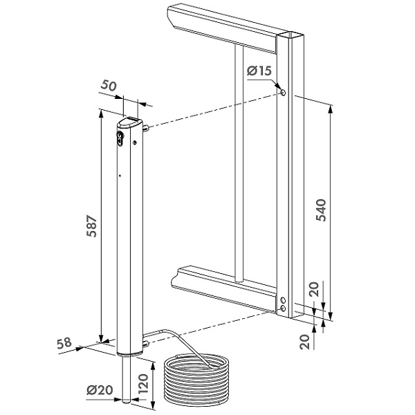 Da collegare alla luce di emergenza sui cancelli automatizzati (preallarme min 3 sec) o direttamente sull’automazione del cancello. Possibilità di sblocco meccanico (tramite chiave) in caso di emergenza, il paletto è d. 20 con corsa di 120 mm (115 la versione Silver).