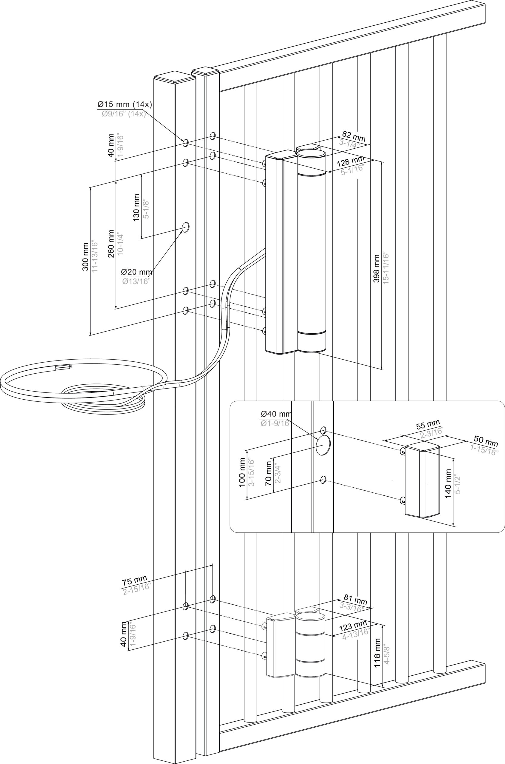 - Adatto a colonne minime da 60 mm e montanti di cancelli da 40 mm
