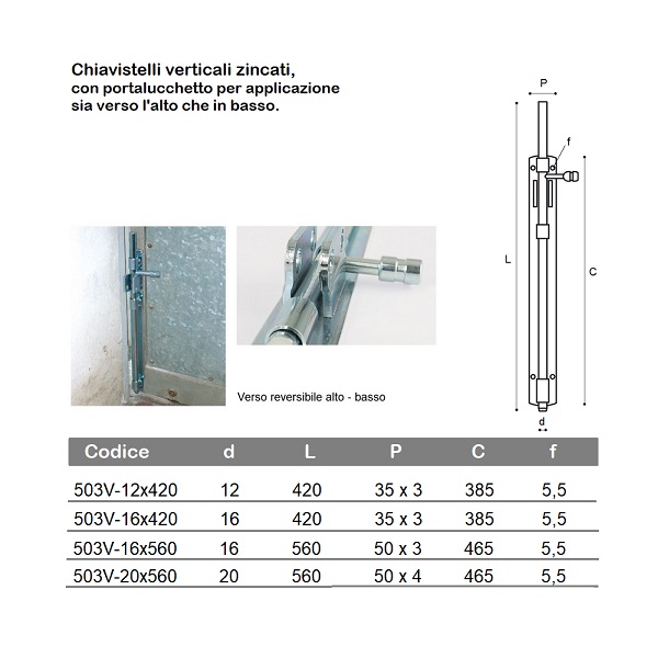 Chiavistelli lunghi verticali di qualità, ZINCATI.